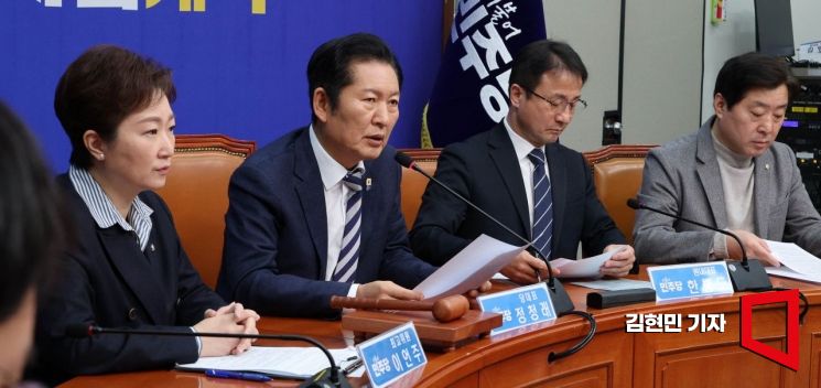 정청래 더불어민주당 대표가 13일 국회에서 열린 최고위원회의에서 발언하고 있다.