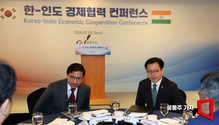 20일 서울 중구 롯데호텔에서 열린 '한-인도 경제협력 컨퍼런스'에 여한구 통상교섭본부장과 고랑랄 다스 주한 인도대사가 참석하고 있다.