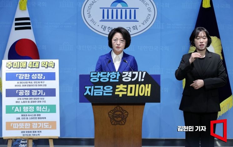 추미애 더불어민주당 의원이 12일 국회 소통관에서 2026년 지방선거 경기도 지사 후보 출마 회견을 하고 있다.