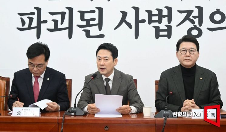 장동혁 국민의힘 대표가 12일 국회에서 열린 최고위원회의에서 발언하고 있다.