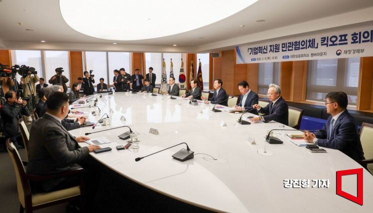 구윤철 경제부총리 겸 재정경제부 장관이 12일 서울 중구 대한상공회의소에서 열린 '기업혁신 지원 민관협의체 킥오프회의'에 참석해 모두발언 하고 있다.