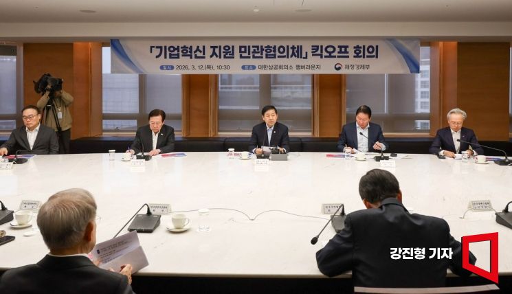 구윤철 경제부총리 겸 재정경제부 장관이 12일 서울 중구 대한상공회의소에서 열린 '기업혁신 지원 민관협의체 킥오프회의'에 참석해 모두발언 하고 있다.