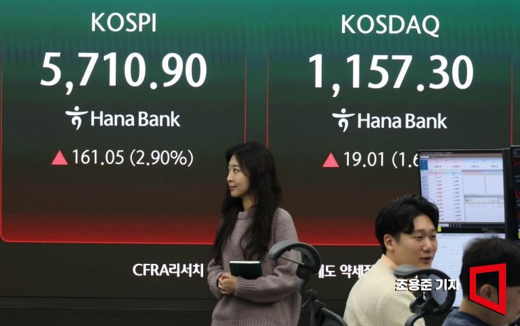 호르무즈해협 개방 기대감이 높아지면서 국내 증시는 상승, 원/달러 환율은 하락 출발한 17일 서울 하나은행 본점 딜링룸에서 직원들이 업무를 보고 있다. 이날 코스피는 전날보다 161.95p(2.92%) 오른 5,711.80로 시작했다. 원/달러 환율은 7.5원 내린 1,490.0원으로, 코스닥은 18.54p(1.63%) 오른 1,156.83로 개장했다.