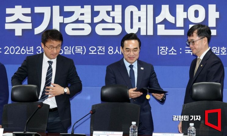 한병도 더불어민주당 원내대표와 박홍근 기획예산처 장관이 26일 국회에서 열린 '2026년 추가경정예산안 당정 협의'에 참석하고 있다.