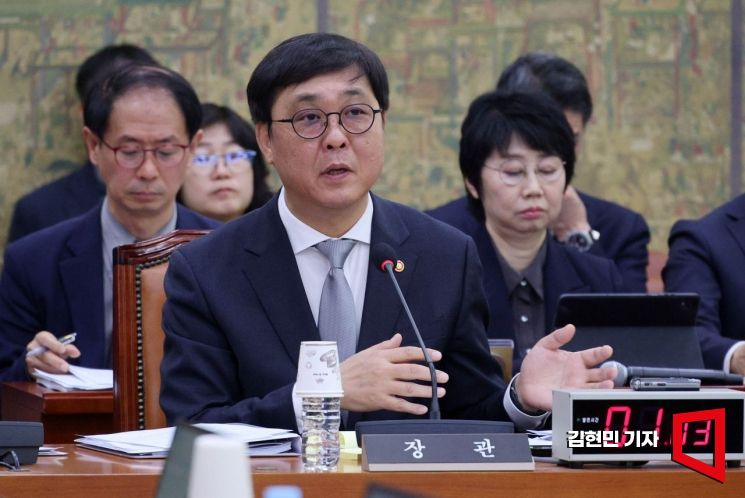 최휘영 문화체육관광부 장관이 27일 국회에서 열린 문회체육관광위원회 전체회의에서 의원 질의에 답변하고 있다.