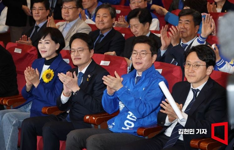 정원오, 박주민, 전현희 더불어민주당 서울시장 경선 예비후보가 30일 국회에서 열린 '서울 현장 최고위원회의'에 참석하고 있다.