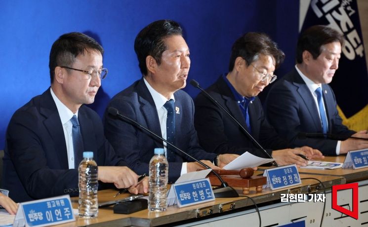 정청래 더불어민주당 대표가 30일 국회에서 열린 '서울 현장 최고위원회의'에서 발언하고 있다.