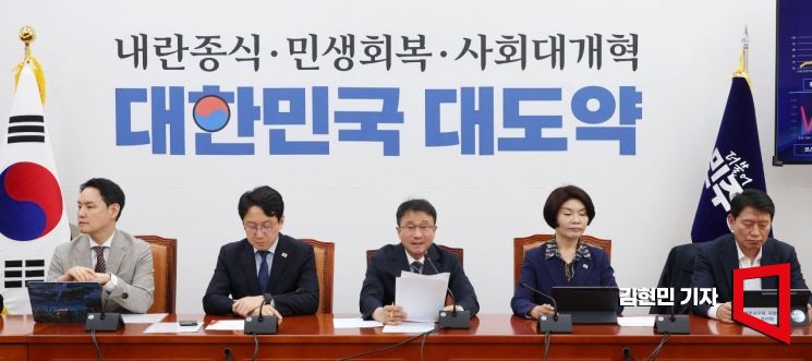 한병도 더불어민주당 원내대표가 31일 국회에서 열린 원내대책회의에서 발언하고 있다.