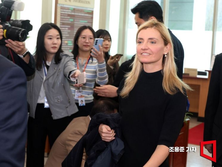 사라 로저스 미국 국무부 공공외교 차관이 1일 서울 종로구 외교부 청사로 들어서고 있다.