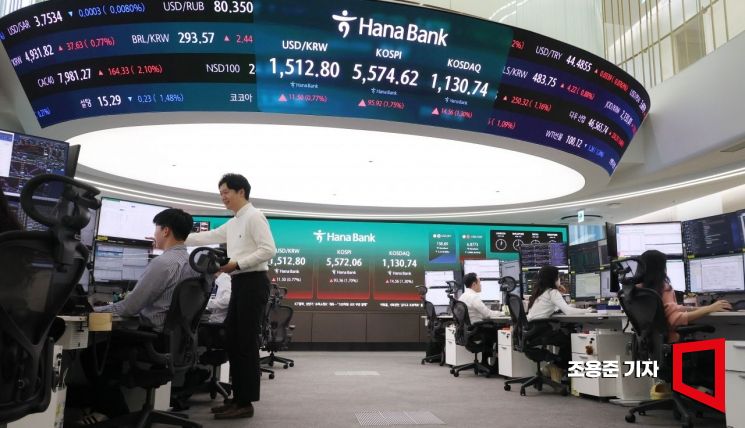 도널드 트럼프 미국 대통령이 미국-이란 전쟁의 ‘2~3주 내 종료 방침을 밝힌 가운데 이란 전쟁과 관련한 대국민 연설을 예고한 2일 서울 중구 하나은행 본점 딜링룸에서 직원이 증시와 환율, 코스닥 등을 모니터하고 있다. 이날 코스피는 전 거래일 대비 1.33% 오른 5551.59에 코스닥은 1.25% 상승으로 출발했다.