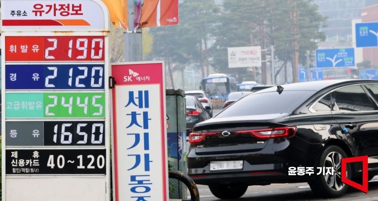도널드 트럼프 미 대통령의 강경 발언으로 국제유가가 급등하고 있는 3일 서울 용산구의 한 주유소 가격에 휘발유·경유 가격 안내문이 놓여 있다.