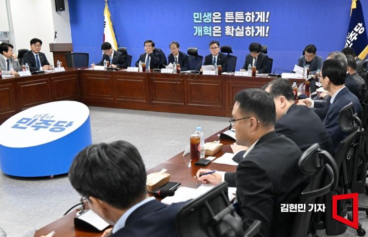 6일 국회 의원회관에서 열린 더불어민주당 중동사태 경제대응 특별위원회 2차 회의에서 유동수 위원장이 발언하고 있다.