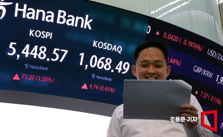 6일 서울 중구 하나은행 본점 딜링룸에서 직원이 증시와 환율 등을 모니터하고 있다. 이날 코스피는 전 거래일 대배 0.86% 오른 5423.35로 원/달러 환율은 5.1원 오른 1.510.3원에 코스닥은 0.43% 오른 1068.33에 장을 시작했다.