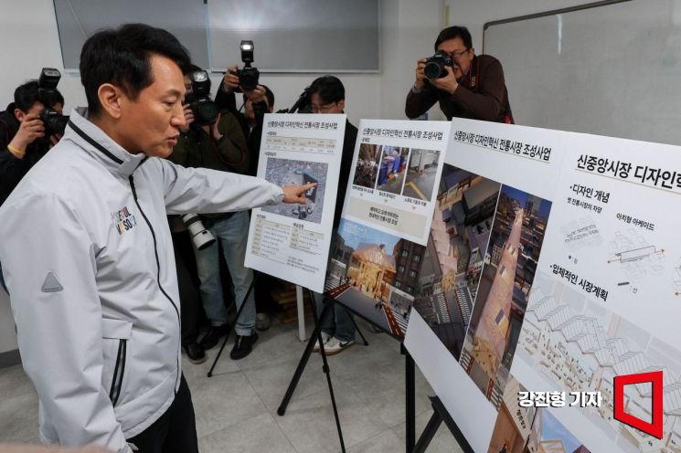 오세훈 서울시장이 8일 서울 중구 서울중앙시장을 방문해 디자인혁신 전통시장 조성사업에 대한 설명을 청취한 뒤 발언 하고 있다.