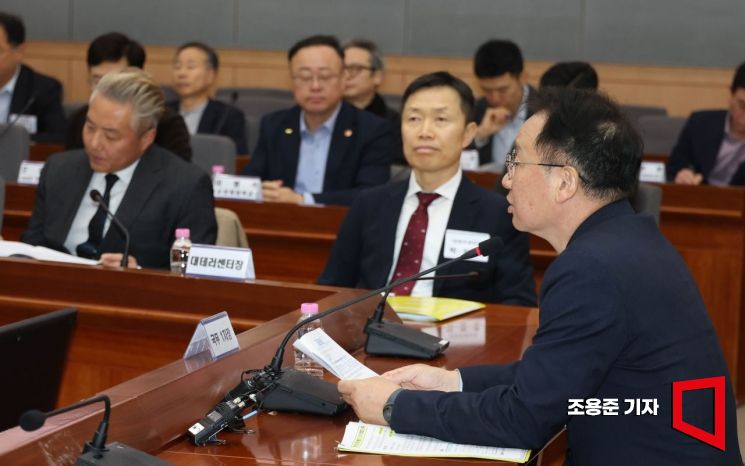 김영수 총리실 국무1차장이 9일 서울 종로구 정부서울청사 별관에서 열린 정부 드론, 대드론 통합 TF에 참석해 발언하고 있다.