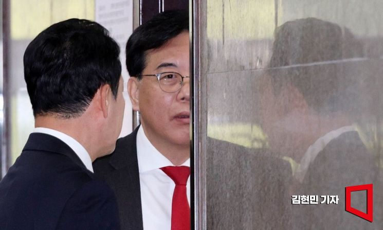 장동혁 국민의힘 대표와 송언석 원내대표가 9일 국회에서 최고위원회의를 마친 뒤 대화하고 있다.