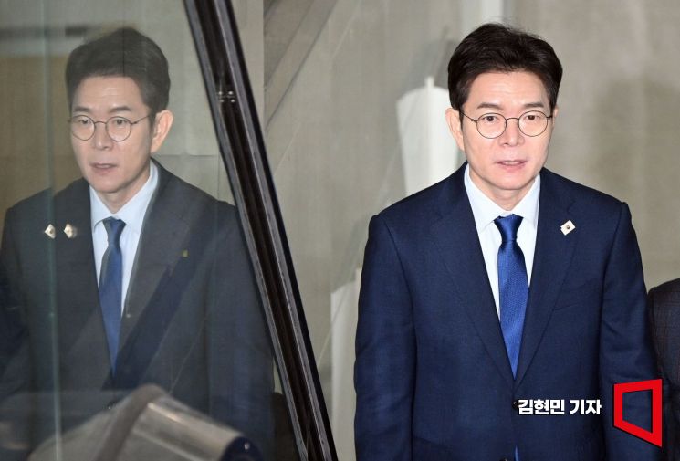 정원오 더불어민주당 6·3 지방선거 서울시장 후보가 10일 서울 여의도 국회 소통관 기자회견장으로 들어서고 있다.