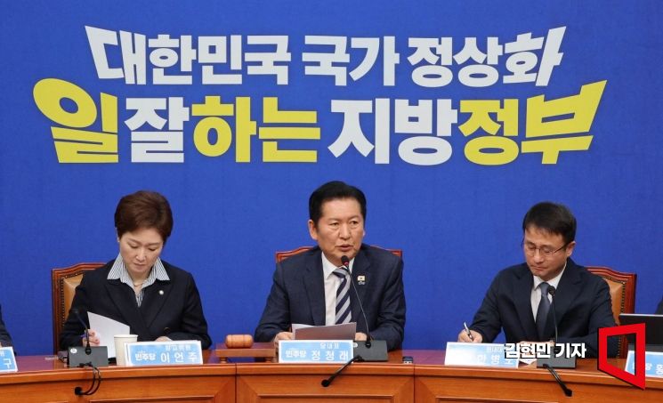 정청래 더불어민주당 대표가 13일 국회에서 열린 최고위원회의에서 발언하고 있다.