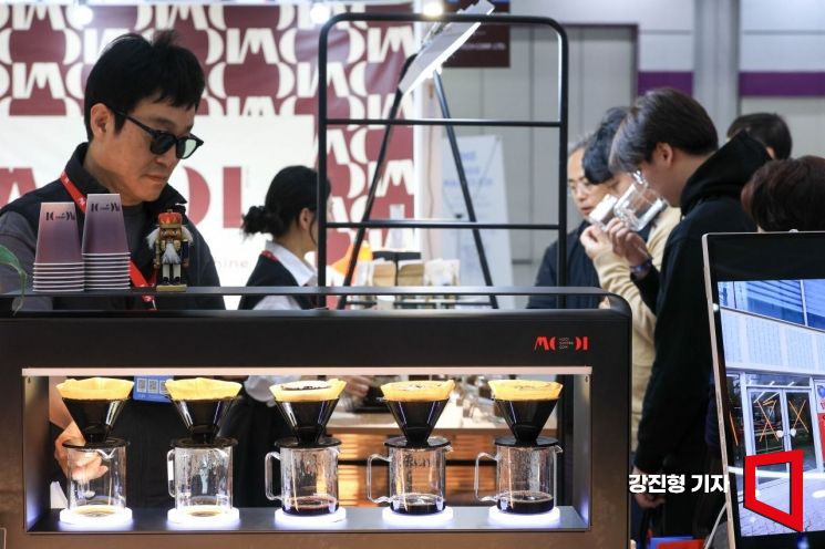 15일 서울 강남구 코엑스에서 열린 '2026 서울커피엑스포'에 참가한 관람객들이 커피 원두향을 맡고 있다.