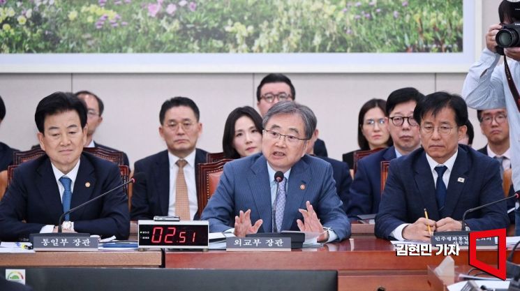 조현 외교부 장관이 15일 국회에서 열린 외교통일위원회 전체회의에 출석해 현안질의에 답하고 있다.