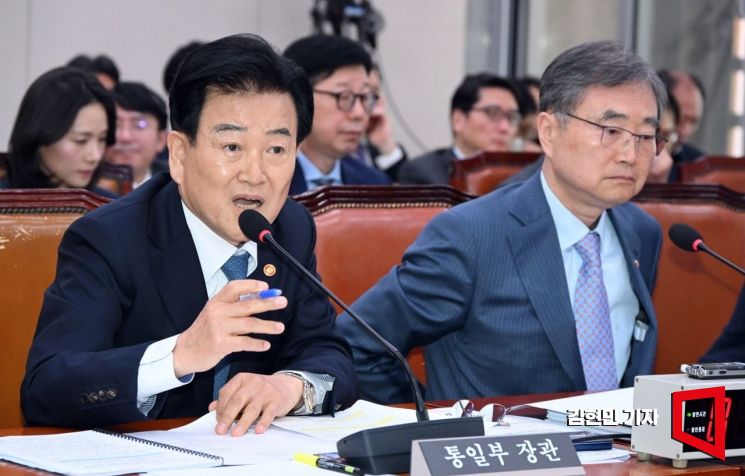 정동영 통일부 장관이 15일 국회에서 열린 외교통일위원회 전체회의에 출석해 현안질의에 답하고 있다.