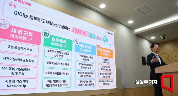 오세훈 서울시장이 16일 서울시청에서 '서울아이 UP 동행 프로젝트' 기자설명회를 하고 있다.