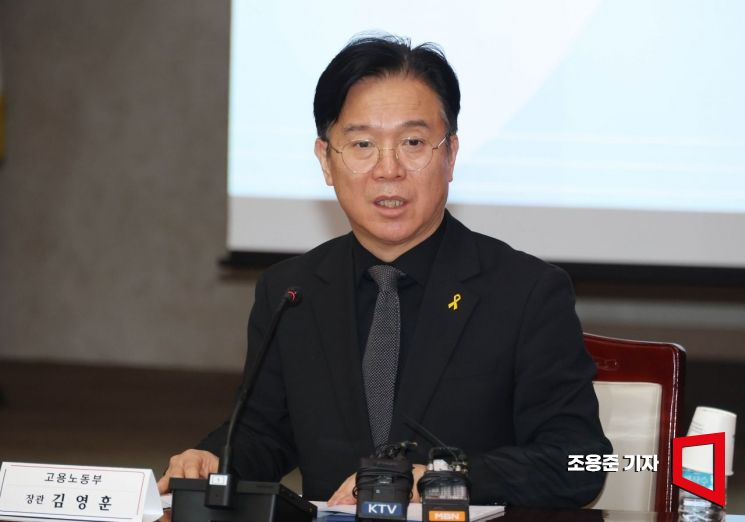 김영훈 고용노동부장관이 16일 서울 종로구 정부서울청사에서 열린 노동안전 관계장관회의에 참석해 공공부문 도급 운영 개선방안에 대해 발언하고 있다.