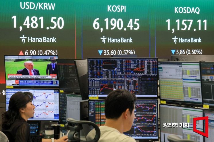 코스피 지수가 전 거래일 대비 1.28포인트 상승한 6227.33으로 장을 시작한 17일 서울 중구 하나은행 본점 딜링룸 전광판에 국내증시 지수가 표시돼 있다.