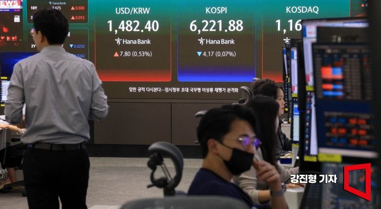 코스피 지수가 전 거래일 대비 1.28포인트 상승한 6227.33으로 장을 시작한 17일 서울 중구 하나은행 본점 딜링룸 전광판에 국내증시 지수가 표시돼 있다.