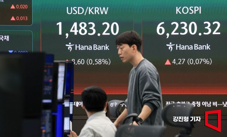 코스피 지수가 전 거래일 대비 1.28포인트 상승한 6227.33으로 장을 시작한 17일 서울 중구 하나은행 본점 딜링룸 전광판에 국내증시 지수가 표시돼 있다.