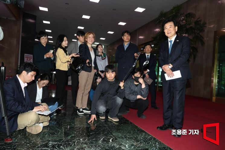 [포토] 북핵시설 발언 관련 취재진 질의에 답하는 정동영 장관