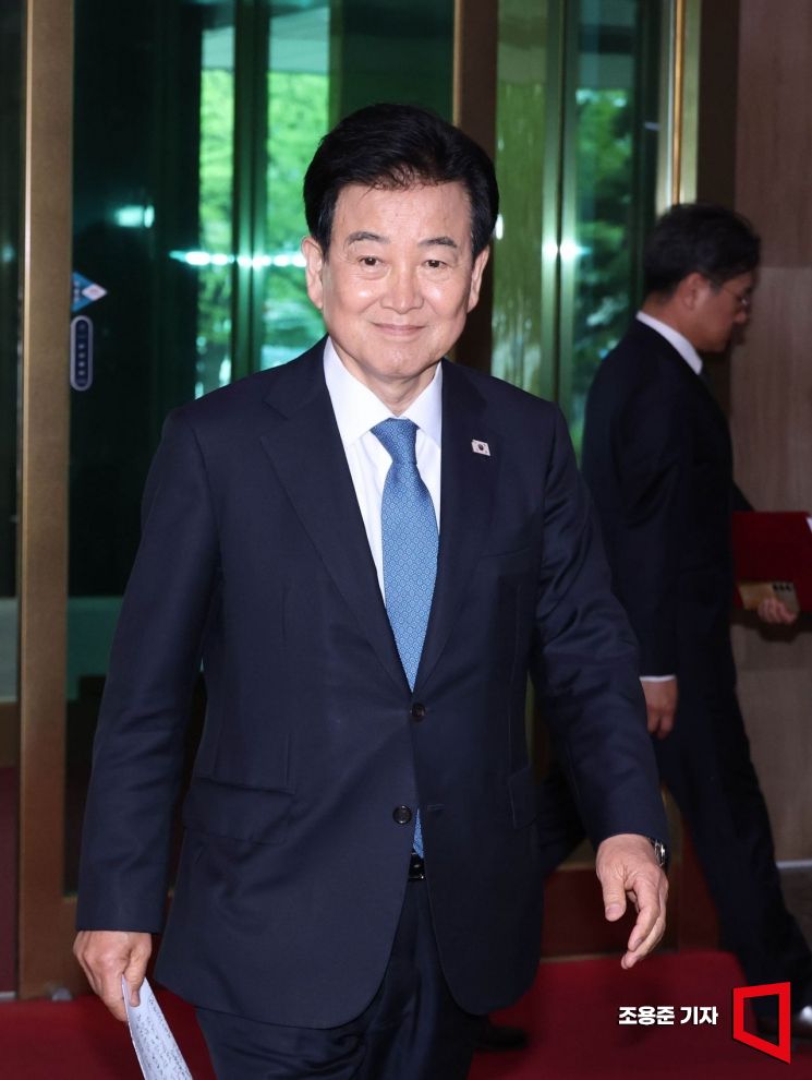 정동영 통일부 장관이 20일 서울 종로구 정부서울청사로 들어서고 있다. 이날 정 장관은 최근 북한 구성시 핵시설 위치 발언과 관련해 기자들의 질의에 입장을 표명했다.