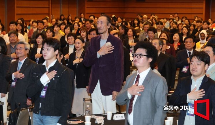 20일 서울 중구 대한상의에서 '2026 세계 자원봉사자의 해' 기념식이 열렸다. 행사에 참석한 한기범 희망나눔 회장이 국민의례를 하고 있다.