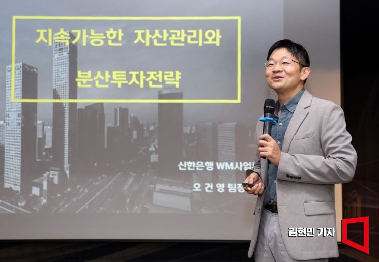 오건영 신한은행 WM사업부 팀장은 19일 "중장기 자산관리는 분산 투자가 핵심"이라며 "가장 위험한 것은 쏠림에 대한 유혹"이라고 말했다. 그는 이날 서울 중구 은행회관에서 열린 '2023 아시아경제 골드에이지포럼'에 참석해 '지속가능한 자산관리와 분산 투자 전략'을 주제로 가진 발표에서 "분산 투자의 중요성은 누구도 부인하지 못하지만 매우 어려운 일이기도 하다"며 이같이 말했다. 오 팀장은 유튜브 채널 '삼프로TV' 고정 게스트로 출연하면서 복잡한 경제를 쉽게 설명해 '거시경제 일타강사' 또는 '갓건영' 등 별칭을 얻었다.