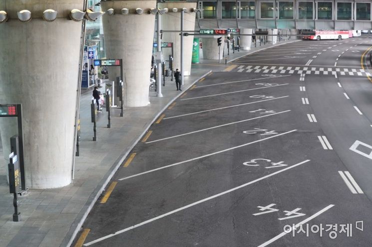 On the 12th, the airport bus stop at Terminal 1 of Incheon International Airport is quiet as the number of countries imposing entry restrictions on travelers from Korea due to COVID-19 has increased to 123. /Reporter Moon Honam munonam@