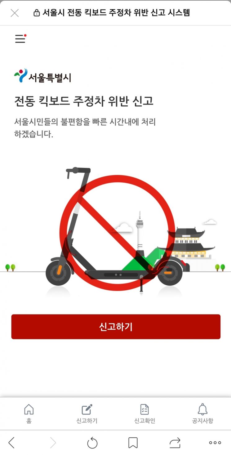 By reporting through the 'Seoul City Electric Scooter Parking Violation Reporting Site,' notifications are sent directly to the scooter company and towing agency for prompt handling and result confirmation.