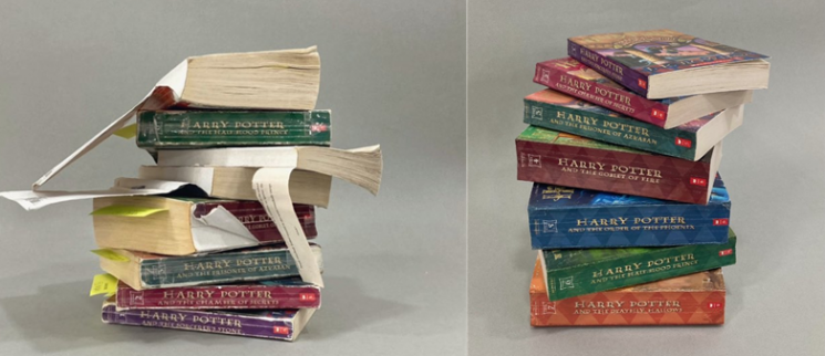 The Harry Potter series sent for repair at 'Jaeyoung Book Repair.' The condition before and after repair by Sujeon. Photo by Jaeyoung Book Repair provided.