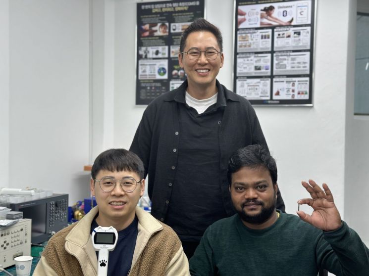 From the left, Seongmun Kim, Researcher in the Department of Electrical and Electronic Engineering at Ulsan National Institute of Science and Technology (UNIST), Professor Youngjae Byun, and Dr. Jagannath Malik (holding the developed devices in their hands).