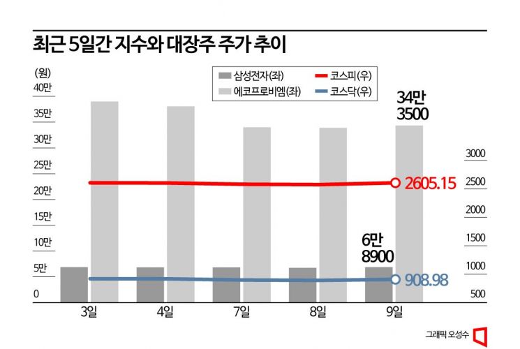 On the 9th, the KOSPI successfully rebounded after six days, reclaiming the 2600 level. The KOSDAQ also showed an upward trend after four days, recovering the 900 level. Leading stocks drove the index rebound. Samsung Electronics rose 1.92% that day, and LG Energy Solution increased by 5.33%. EcoPro BM and EcoPro rose by 1.33% and 4.64%, respectively.