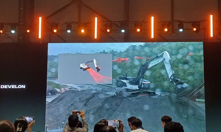 On the 20th, rain poured down as if a hole had been torn in the sky over Boryeong, Chungnam. The HD Hyundai Site Solutions 22-ton class DEVELON unmanned excavator and 10-ton class DEVELON unmanned dozer silently leveled the ground and moved soil despite the rain. On this day, a demonstration of the 'Concept-X2' unmanned excavator and unmanned dozer without a driver's cabin, developed for the first time in Korea, was held.