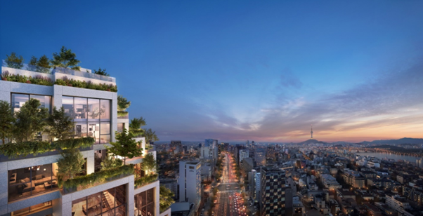A new landmark is rising in Cheongdam-dong, Gangnam-gu, Seoul. This is because a vertical forest, a globally recognized architectural trend and a regional landmark in cities such as Milan, Italy, Lausanne, Switzerland, and Brisbane, Australia, is being introduced domestically.