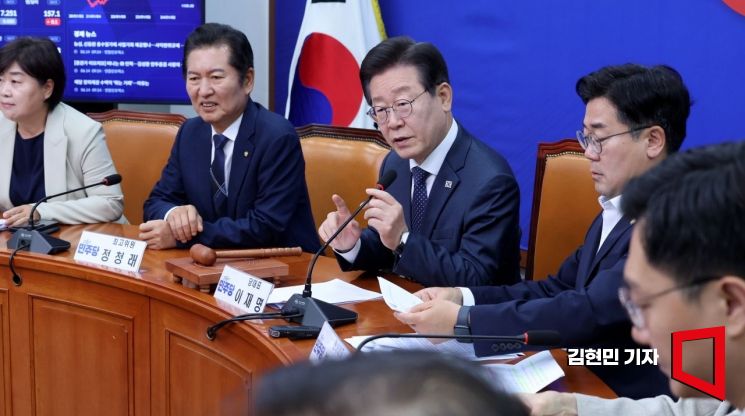 Lee Jae-myung, leader of the Democratic Party of Korea, is speaking at the Supreme Council meeting held at the National Assembly on the 14th. Photo by Hyunmin Kim kimhyun81@