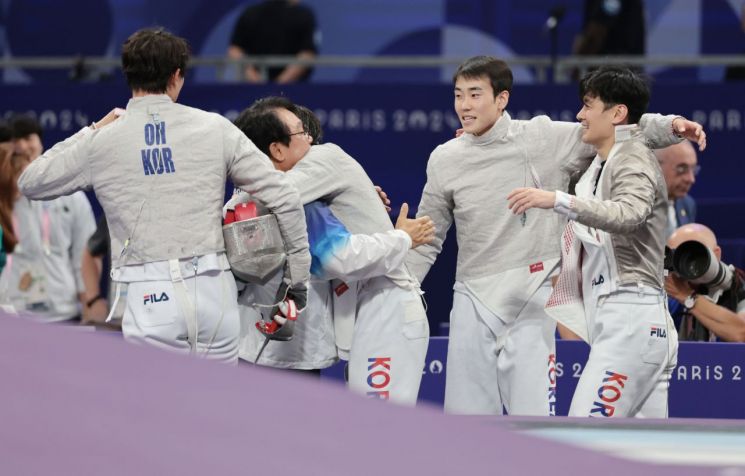 Composed of Oh Sang-wook (Daejeon Metropolitan City Hall), Koo Bon-gil (Korea Sports Promotion Foundation), Park Sang-won (Daejeon Metropolitan City Hall), and Do Kyung-dong (Korea Armed Forces Athletic Corps), the men's sabre team advanced to the finals by defeating France 45-39 in the semifinals of the 2024 Paris Olympic team event held on the 31st at the Grand Palais in Paris, France.