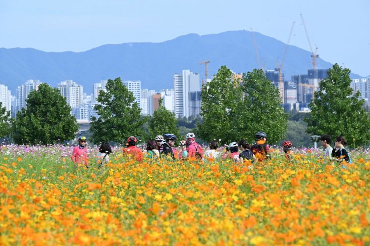 Citizens are enjoying the "2025 Guri Cosmos Festival" held from the 26th to the 28th at Guri Hangang Citizens' Park. Provided by Guri City