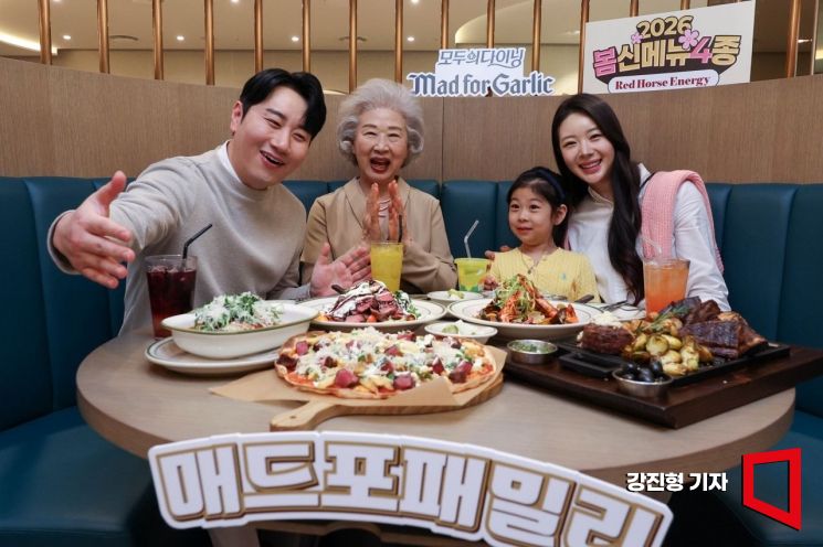 On March 24, at the Mad for Garlic Yeongdeungpo Times Square location in Yeongdeungpo-gu, Seoul, family customers are tasting a variety of dishes, including Mad for Garlic's new spring 2026 menu. 'Mad for Garlic,' operated by MFG Korea (CEO Yoon Daye), has announced its 2026 brand slogan, 'Mad for Family,' and has officially launched its campaign.