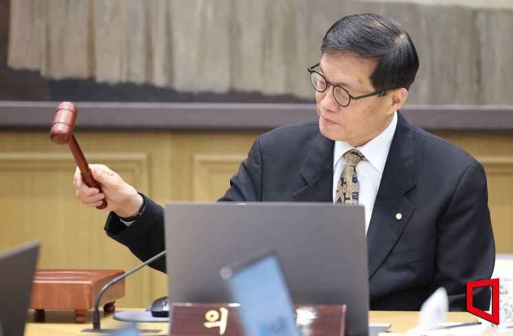 Lee Chang-yong, Governor of the Bank of Korea, is striking the gavel at the Monetary Policy Committee plenary session held at the Bank of Korea headquarters in Jung-gu, Seoul, on the 10th. Photo by Joint Press Corps