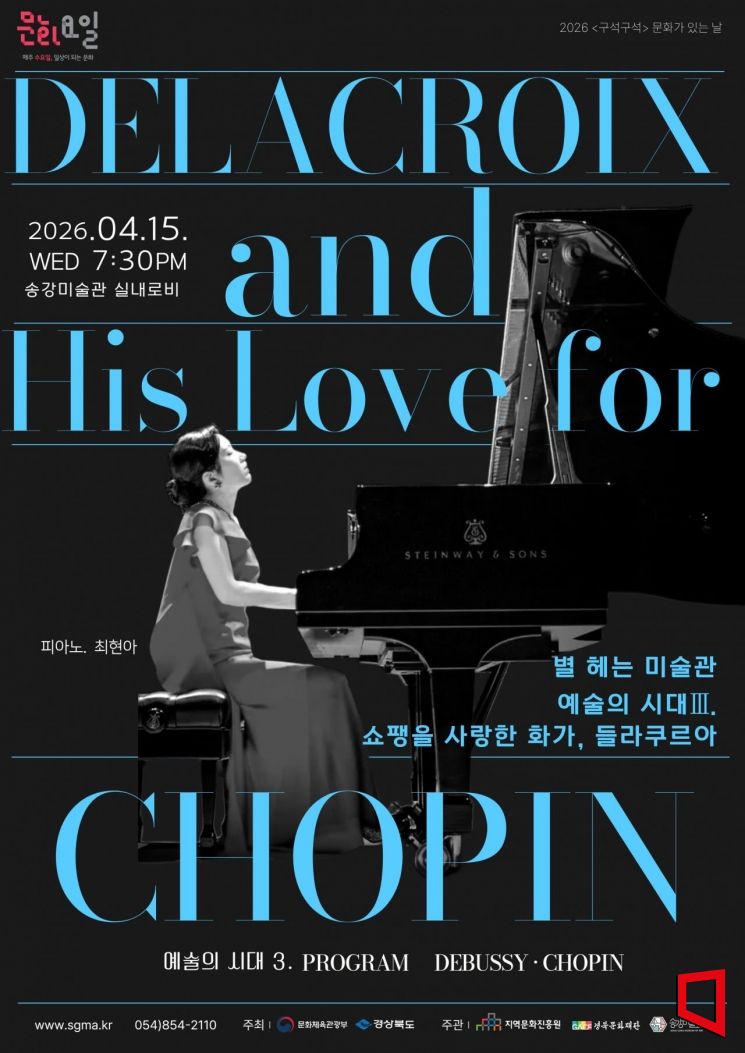 Pianist Choi Hyuna will take the stage, beginning with Debussy's "Clair de Lune" and continuing with a repertoire representative of the Romantic era, including Chopin's "Scherzo No. 2 (Op. 31)," "Nocturne (Op. 48-1)," "Ballade No. 4 (Op. 52)," and "Etude Op. 10 No. 3 (Tristesse)." Her delicate yet profound piano performance is expected to harmonize with the vibrant color sensibility of Delacroix's paintings, providing the audience with a multidimensional experience where music and art are seamlessly intertwined.
