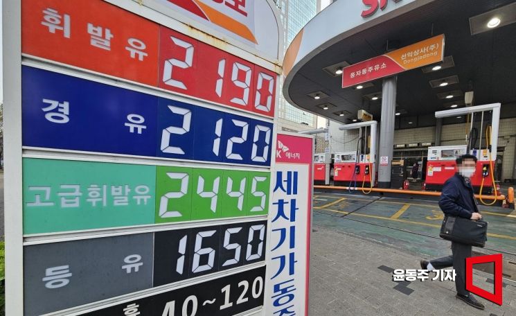 On April 3, 2026, a notice displaying gasoline and diesel prices is placed at a gas station in Yongsan-gu, Seoul, amid a sharp rise in global oil prices following strong remarks by U.S. President Donald Trump. Photo by Dongjoo Yoon