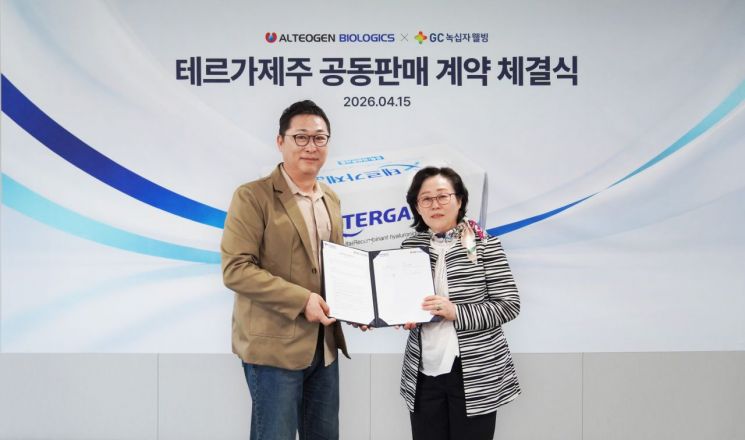 GC Green Cross Wellbeing announced on April 16 that it has signed a domestic joint sales agreement with Alteogen Biologics for the human-derived recombinant hyaluronidase "Tergase," and will begin targeting the domestic market.
