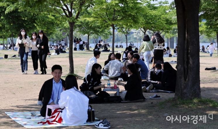 Citizens are enjoying outings at Yeouido Hangang Park in Seoul. Photo by Hyunmin Kim